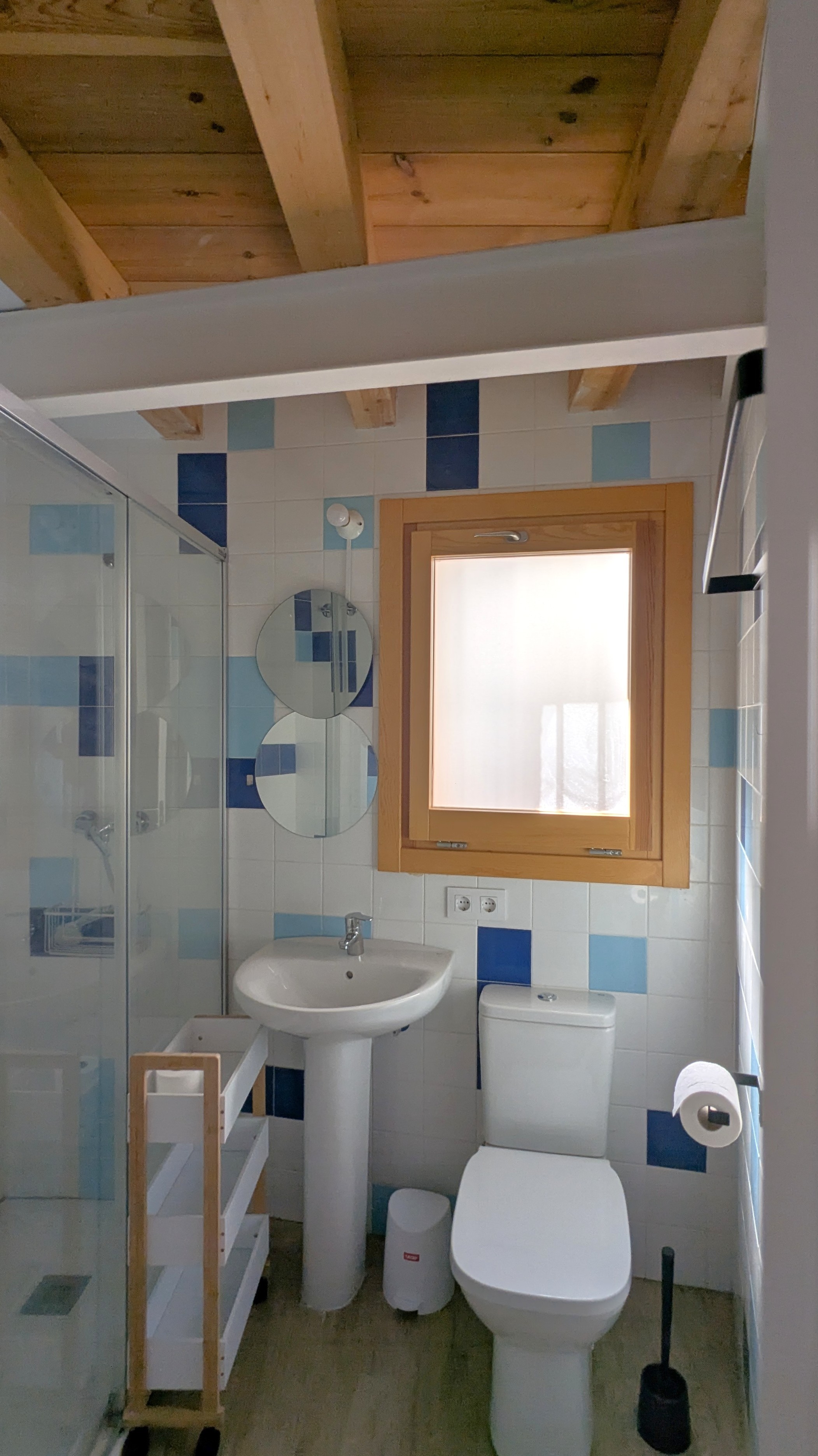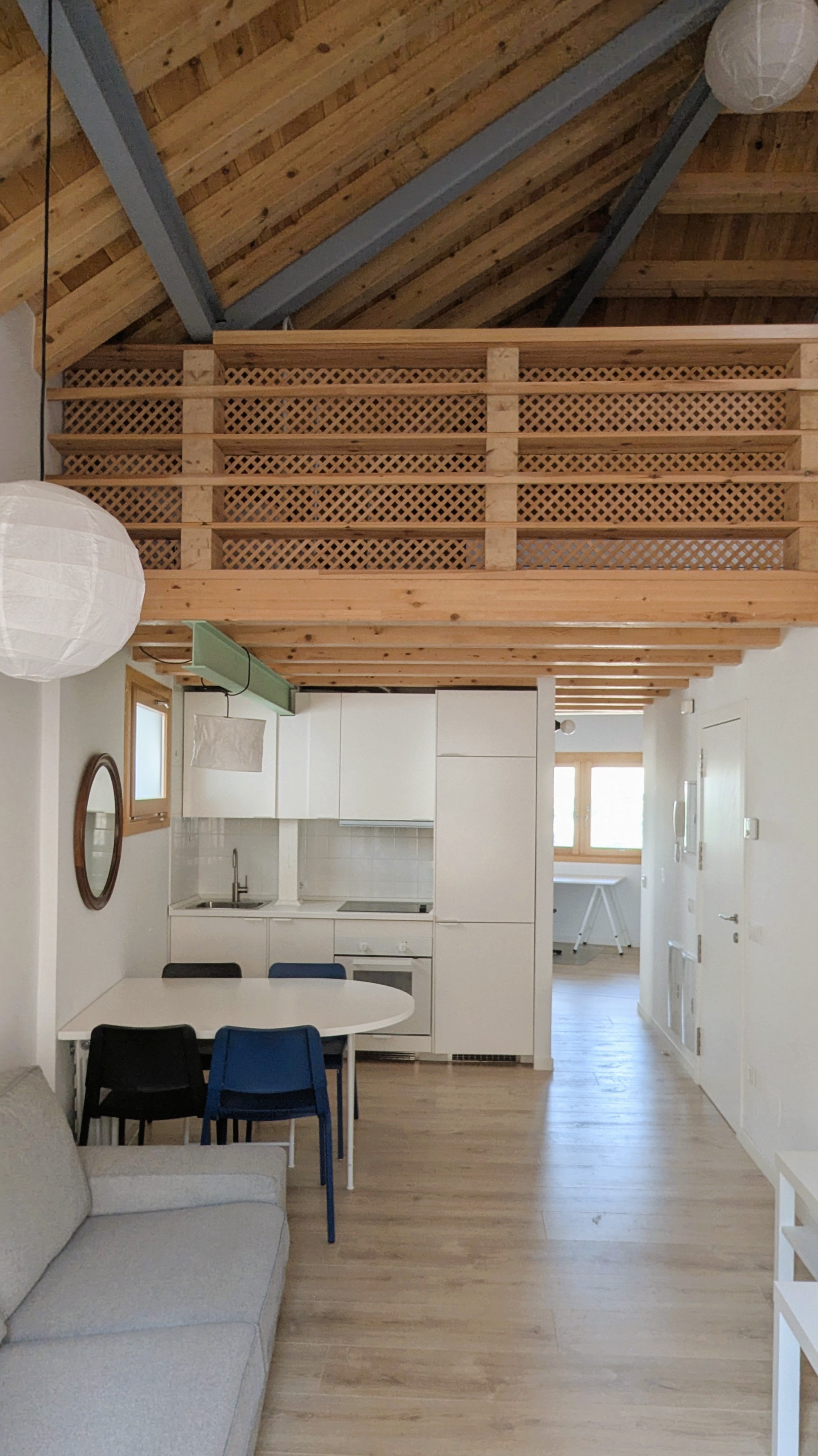 • Cocina completa con horno, placa vitrocerámica y nevera con congelador independiente